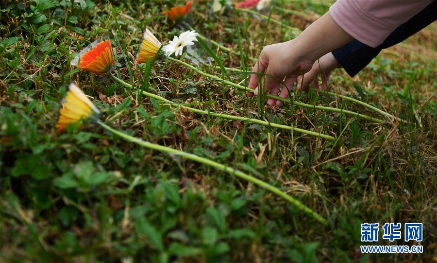 10月19日,參與秋祭活動(dòng)的民眾在活動(dòng)現(xiàn)場(chǎng)獻(xiàn)花。  新華社記者 陳斌 攝