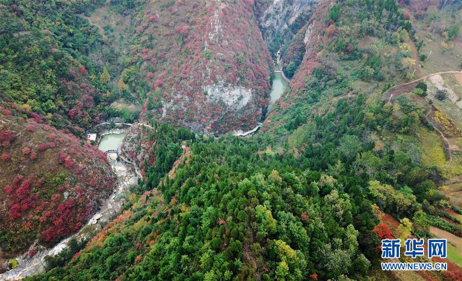 這是10月19日無(wú)人機(jī)拍攝的河北省涉縣太行紅葉大峽谷景色。新華社記者王曉攝