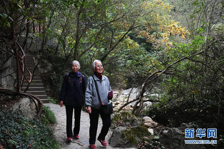 10月16日,兩位老人在西狹頌景區(qū)內(nèi)游覽。新華社記者陳斌攝