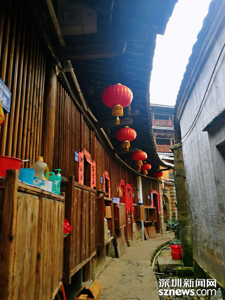 這個村的土樓沿河而建,并非常均勻地分布在兩岸,土樓形態(tài)豐富,有常見的方形、圓形土樓,還有圍裙形、曲尺形土樓,最獨特的是還有浙杭水鄉(xiāng)模式單院式土木、磚木結(jié)構(gòu)的吊角樓,形成大樓帶小樓、高低錯落布局的奇妙景觀。