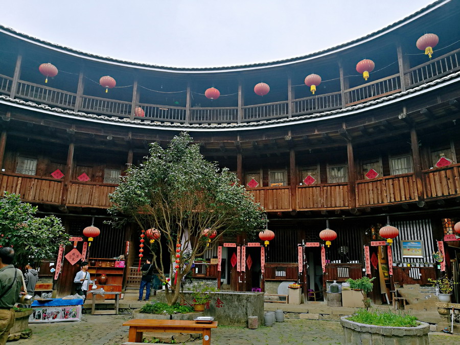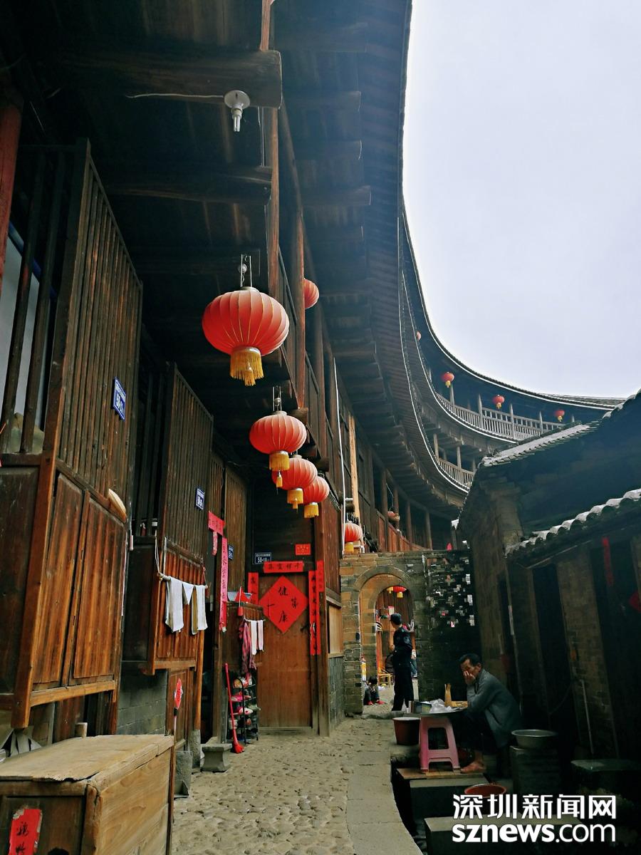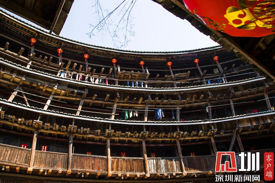 承啟樓高四層,四圈上下400余間,“民居”系列郵票中福建民居就以承啟樓為圖案,進入土樓可以欣賞到典型的土家風情。李酮攝