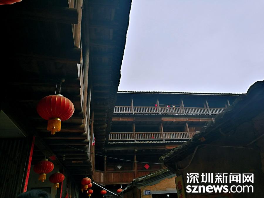 高5層18.2米、每層54間是共有房270間,占地是2289平方米,建筑面積是6358.2平方米,土木結(jié)構(gòu)是通廊式圓樓;第一層墻厚是1.8米,往上逐層減縮了10厘米。