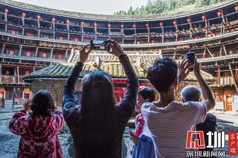 客家圍龍屋里面,現(xiàn)在大部分被開發(fā)成旅游景點,有“土樓之王”稱號的承啟樓,每年就吸引大量的游客參觀。李酮攝