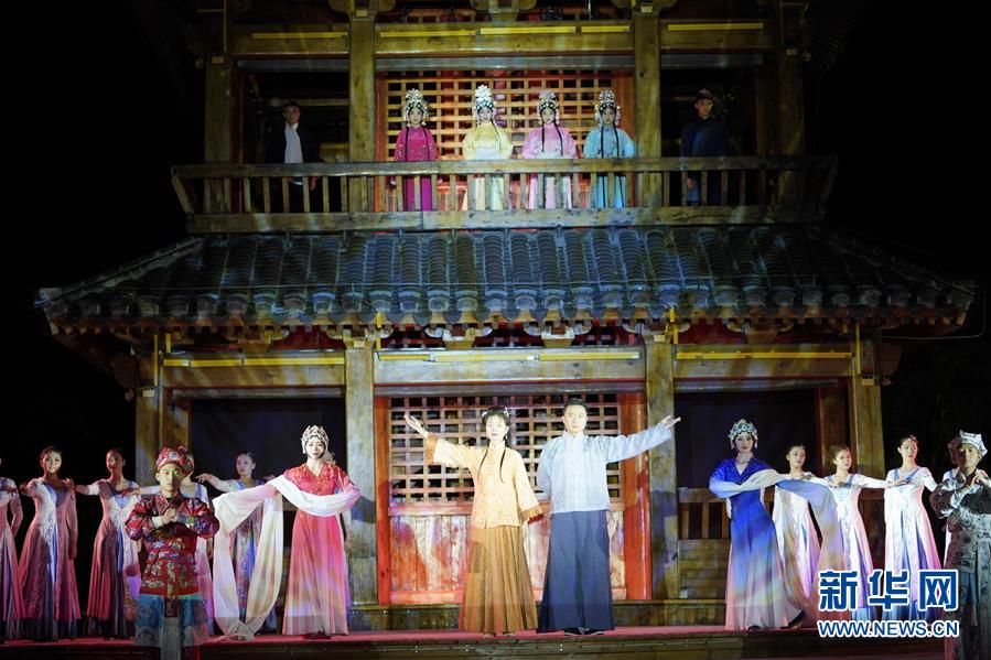 10月24日,演員在表演實(shí)景劇《那年芳華》。 河北省唐山市在南湖景區(qū)打造沉浸式實(shí)景劇《那年芳華》。該劇以南湖景區(qū)的自然景觀為載體,利用光影藝術(shù),展現(xiàn)了梨園人的家國(guó)情懷。 新華社記者 邢廣利 攝