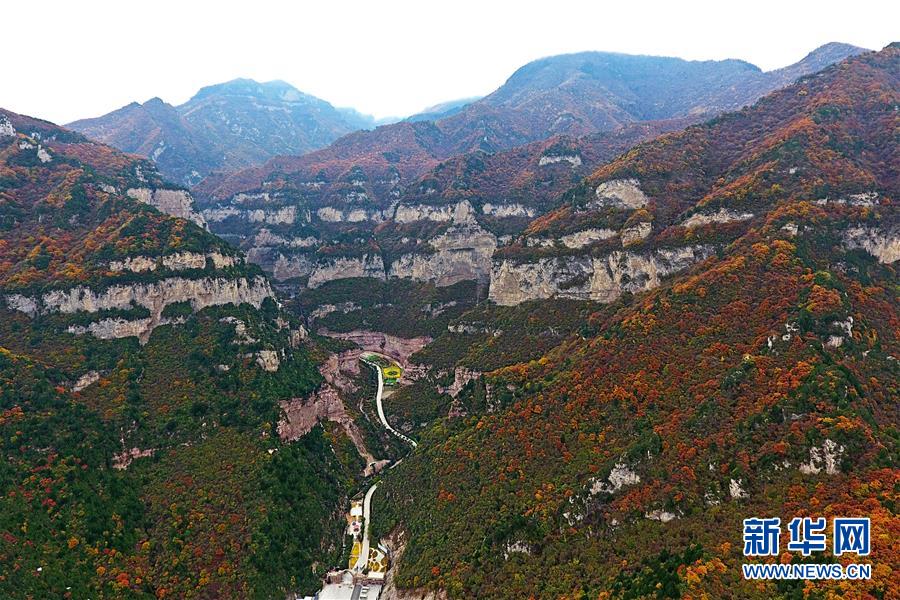 山西省靈石縣境內的太岳山風光(10月24日無人機拍攝)。