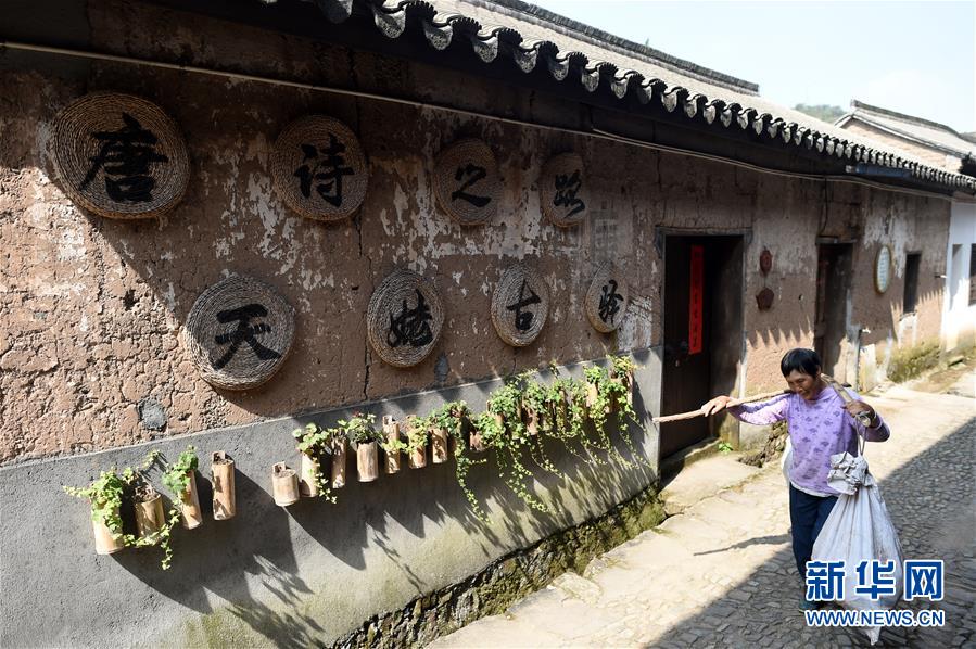 10月24日,班竹村一名老人挑貨走在村內(nèi)的道路上。浙江省新昌縣境內(nèi)的班竹村位于天姥山腳下,被稱為“天姥門戶”,曾是浙東“唐詩之路”上的驛站。近年來,班竹村依托深厚的文化底蘊(yùn)大力發(fā)展鄉(xiāng)村旅游,全村“人人參股、戶戶分紅”,將整個村莊打造為旅游綜合體,今年以來班竹村旅游收入已超過800萬元。新華社記者韓傳號攝