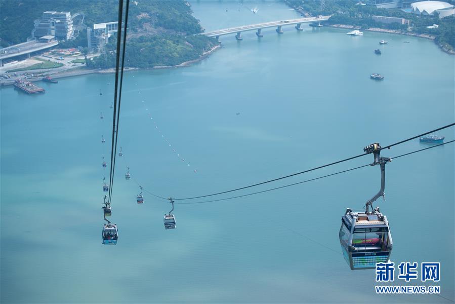 10月24日上午拍攝的香港昂坪360纜車。2018年10月23日,港珠澳大橋正式開(kāi)通。新華社記者張金加攝