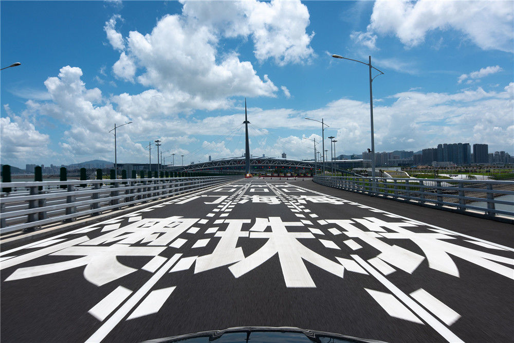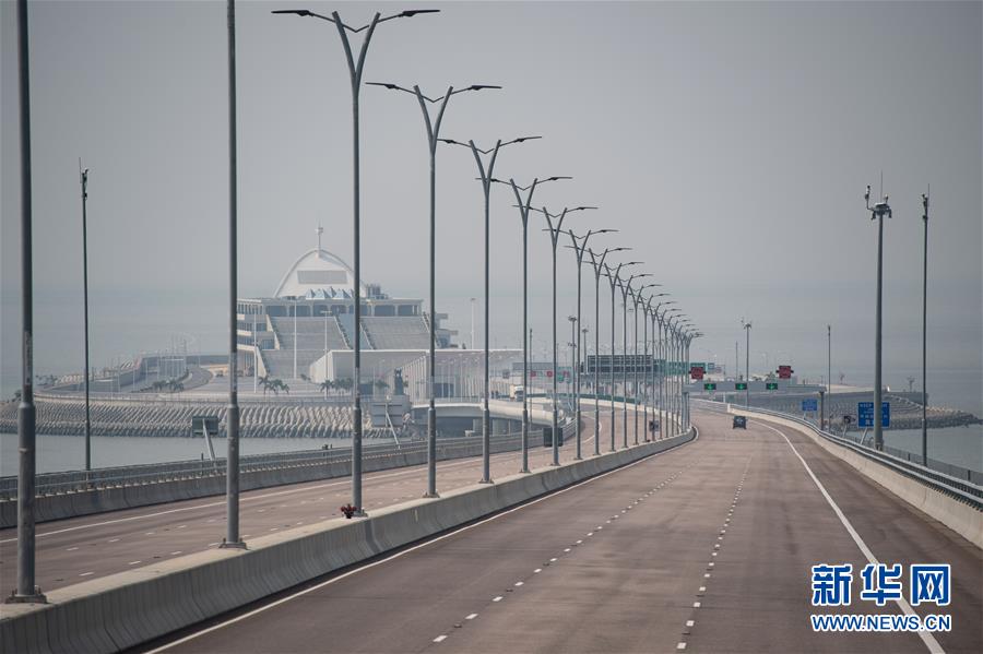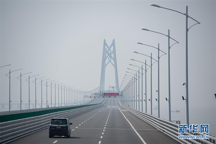 10月24日午后,車輛駛往港珠澳大橋東人工島。2018年10月23日,港珠澳大橋正式開(kāi)通。新華社記者張金加攝