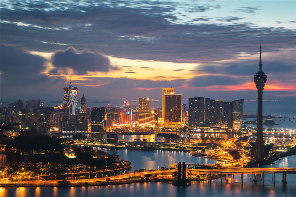 2018年6月16日,澳門,城市風(fēng)光。遠(yuǎn)處的港珠澳大橋。徐小天/視覺(jué)中國(guó)