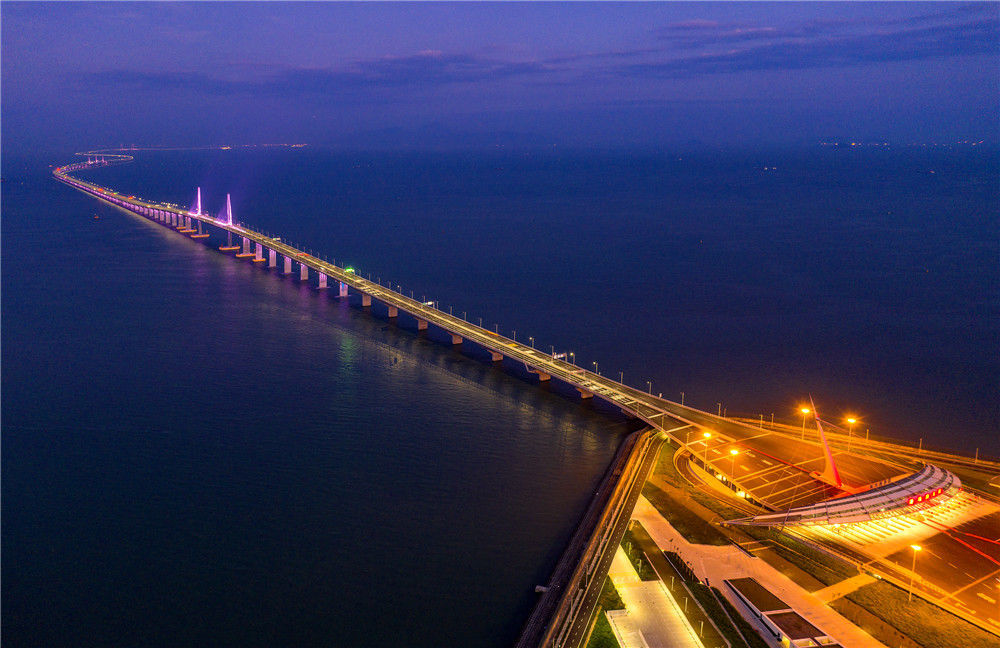 晨曦中的港珠澳大橋珠澳口岸人工島(10月24日無(wú)人機(jī)拍攝)。2018年10月23日,港珠澳大橋正式開(kāi)通。在這座圓夢(mèng)橋、同心橋、自信橋、復(fù)興橋開(kāi)通一周年之際,記者親自體驗(yàn)“一橋連三地、一日游三城”的悠閑與便利,于不同的旖旎風(fēng)光中自在游覽,在不同的城市風(fēng)貌間自如切換。新華社記者張金加攝