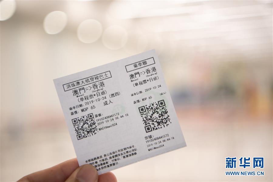 這是澳門往香港方向的港珠澳大橋穿梭巴士車票(10月24日攝)。2018年10月23日,港珠澳大橋正式開(kāi)通。新華社記者張金加攝