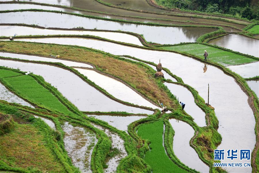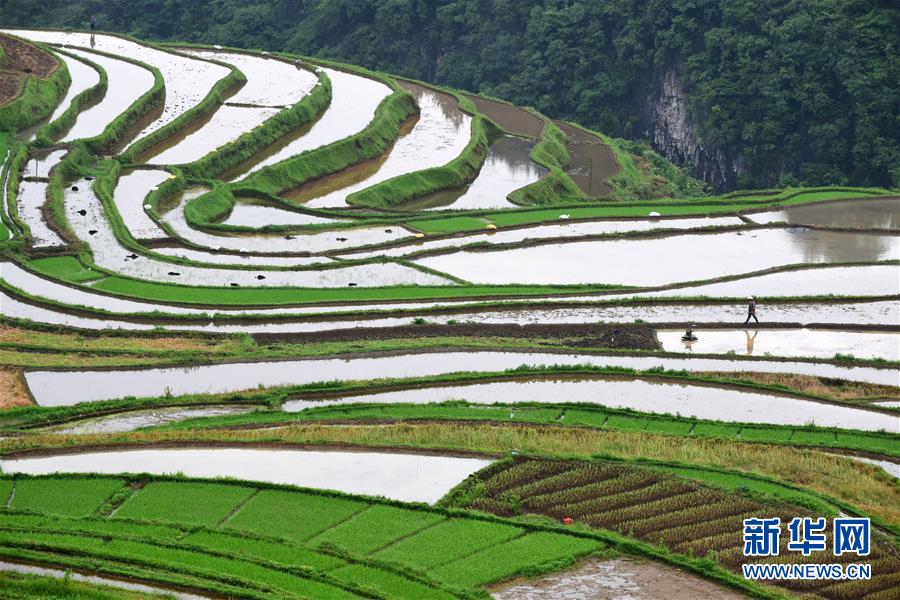 5月18日,農民在貴州省丹寨縣龍泉鎮(zhèn)高要梯田里勞作。初夏時節(jié),位于貴州省丹寨縣龍泉鎮(zhèn)的高要梯田景色優(yōu)美。新華社記者楊文斌攝