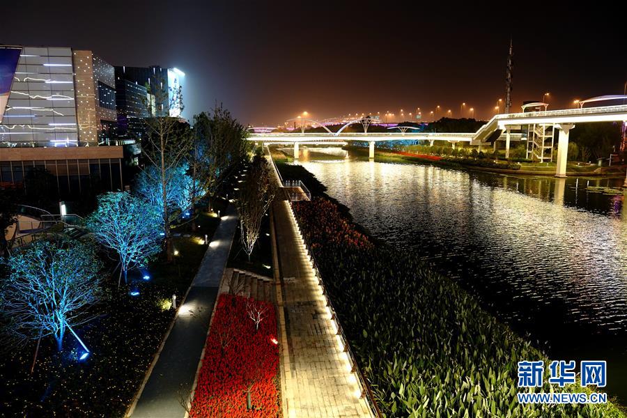 10月25日晚在國(guó)家會(huì)展中心(上海)附近拍攝的北橫涇夜景。新華社記者張建松攝
