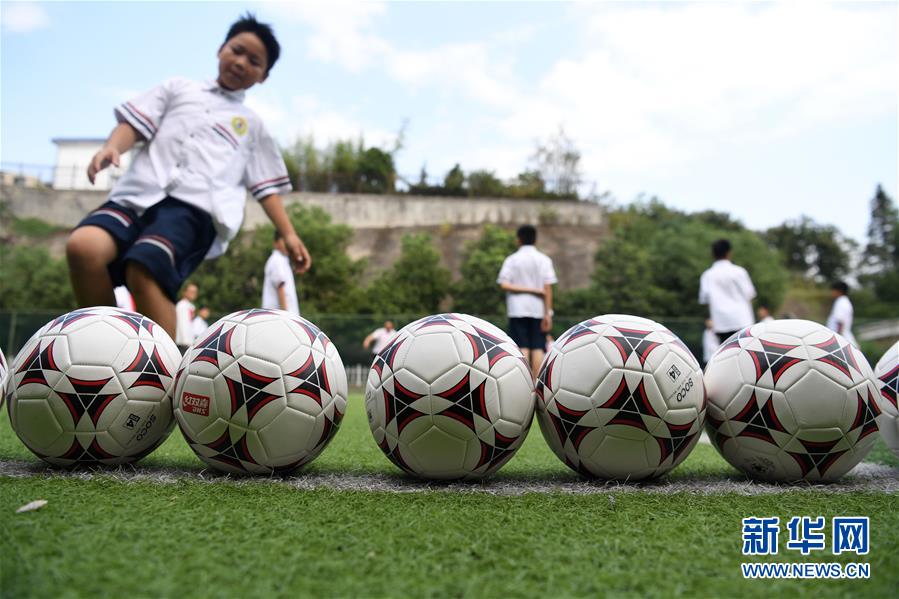 9月3日,金寨縣希望小學(xué)學(xué)生在足球課上訓(xùn)練。新華社記者劉軍喜攝