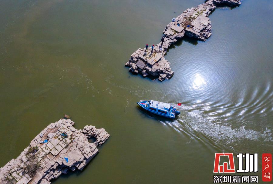 2019年10月30日,江西仙女湖旅游股份有限公司測量人員乘坐工作船對明代萬年橋進(jìn)行測量,該橋橋身凸出水位最高處達(dá)1.64米。