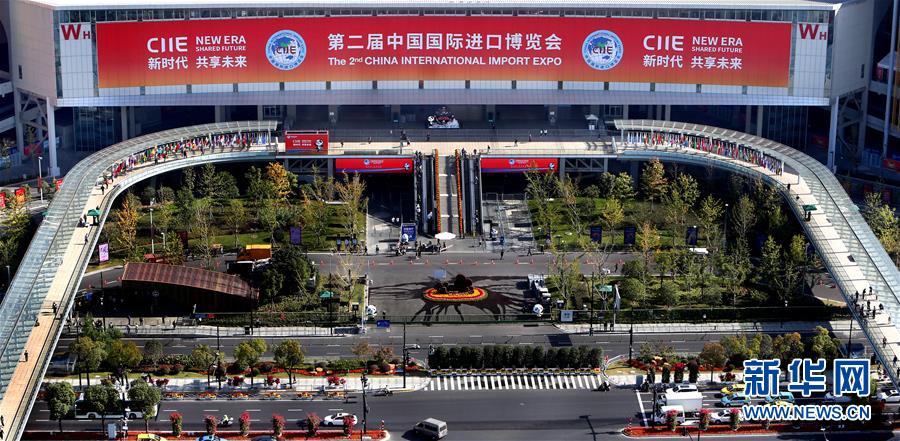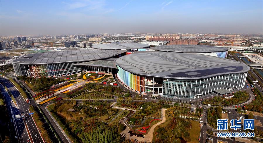 從空中俯瞰國家會展中心(上海)南廣場(11月1日無人機拍攝)。新華社記者凡軍攝