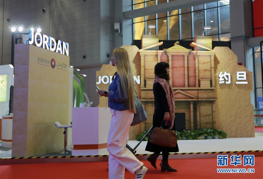 11月5日,參觀者走過第二屆進博會約旦國家館。新華社記者鄭衛(wèi)攝