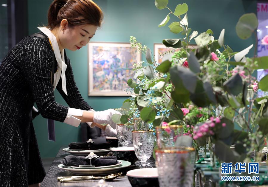 11月5日,在第二屆進博會品質生活展區(qū),工作人員在一家丹麥家居產品的展臺前忙碌。新華社記者劉穎攝
