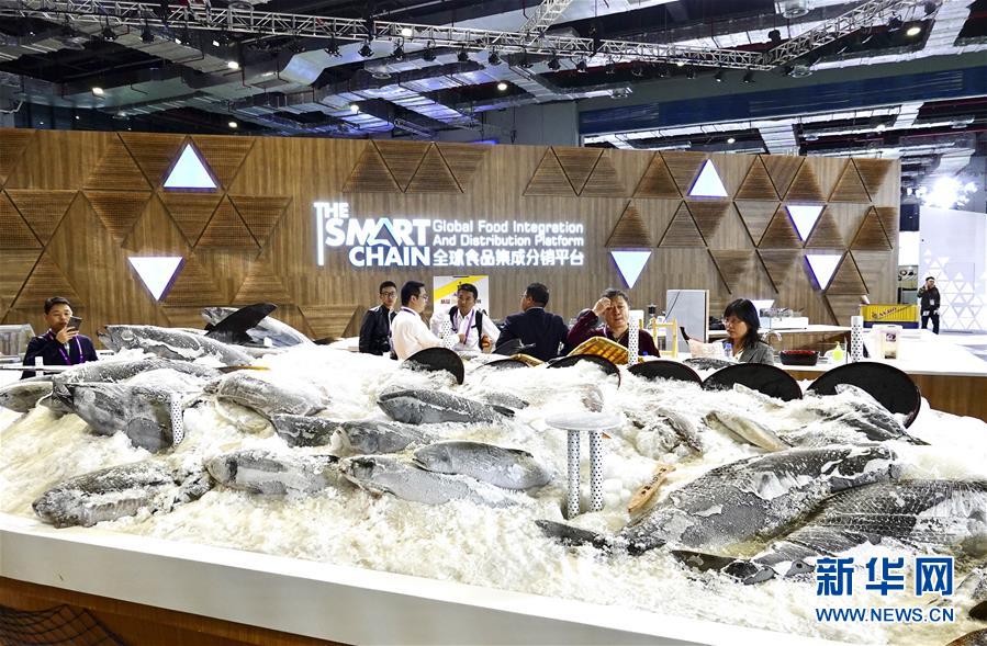 11月5日,參觀者在食品及農產品展區(qū)全球食品集成分銷平臺參觀。新華社記者才揚攝
