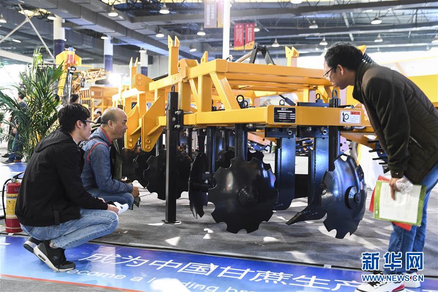 11月16日,參觀者在展會現(xiàn)場參觀與甘蔗生產(chǎn)有關(guān)的機械設(shè)備。新華社記者曹祎銘攝
