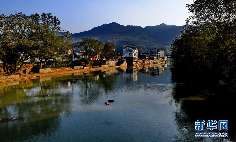 這是夕陽(yáng)下的武夷山下梅村(11月5日攝)。新華社記者馬平攝