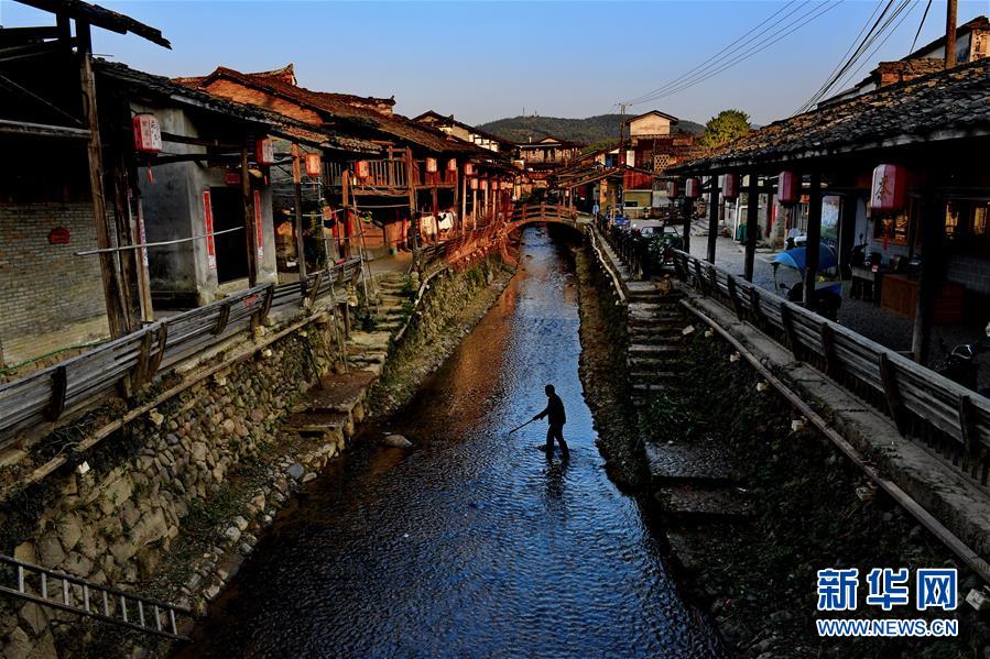 這是夕陽(yáng)下的武夷山下梅村(11月5日攝)。新華社記者李鵬攝