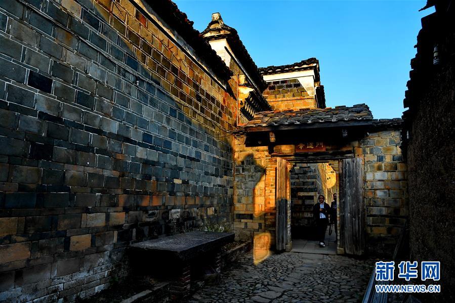 這是夕陽(yáng)下的武夷山下梅村一角(11月5日攝)。新華社記者張國(guó)俊攝