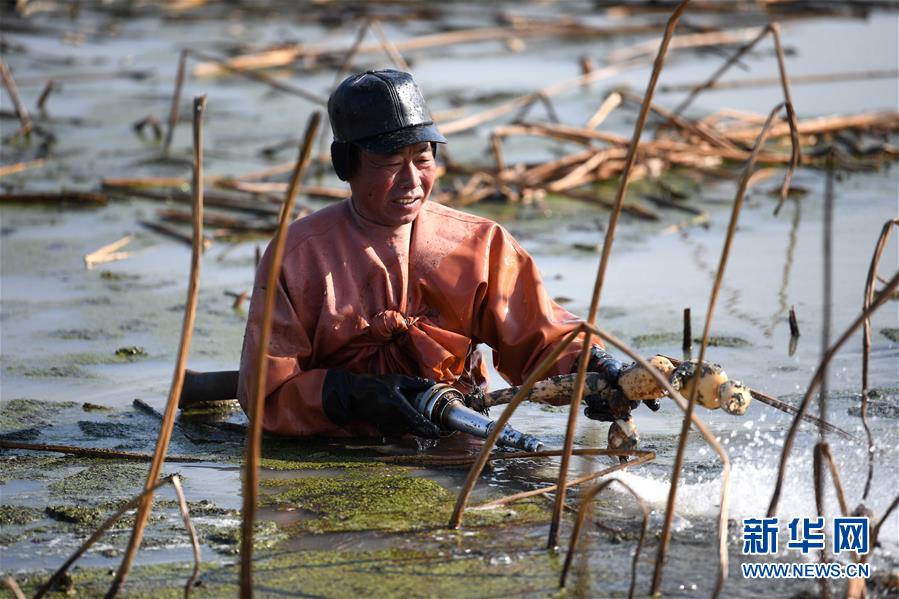 王公平每天泡在冰冷的水中勞動(dòng)9個(gè)小時(shí),挖藕約1000斤,獲得酬勞約300元。寒冬時(shí)節(jié),安徽省肥西縣豐樂鎮(zhèn)蓮藕種植基地里活躍著不少挖藕人,他們身穿橡膠工作服,在冰冷的水中辛勤工作。
