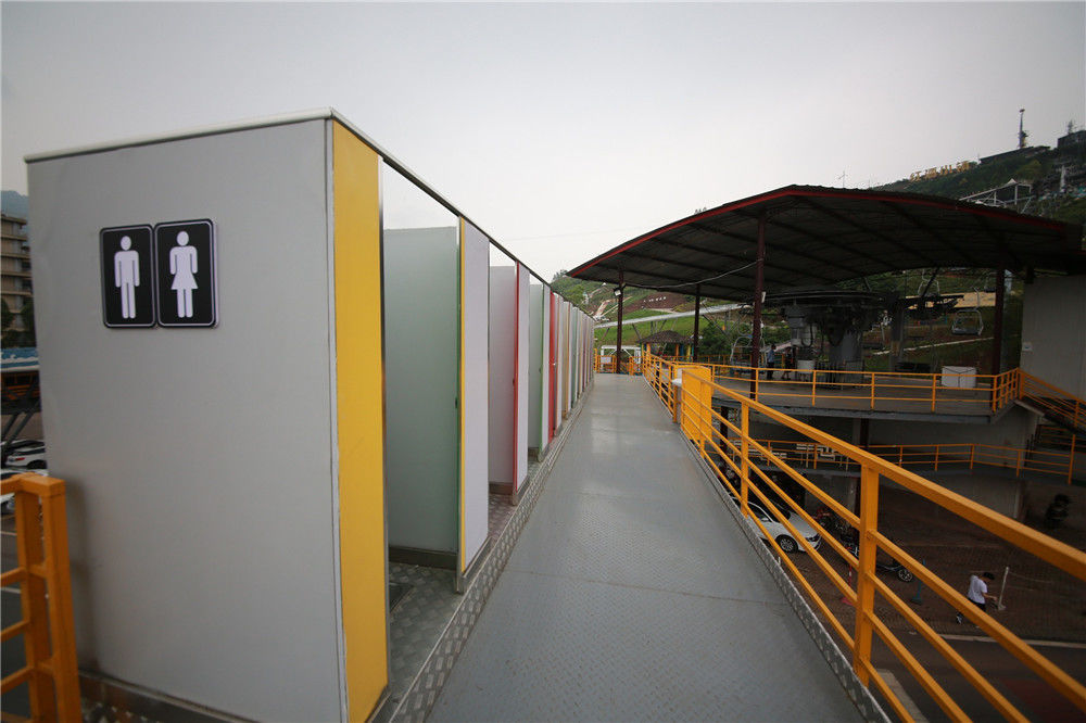 2018年5月5日,重慶涪陵紅酒小鎮(zhèn)一過街天橋上修建了一排“無(wú)性別公廁”,過往民眾稱這完全像是“空中廁所”。據(jù)悉,修建露天公廁主要是緩解該景區(qū)游客入廁難的問題。蘇志剛/視覺中國(guó)