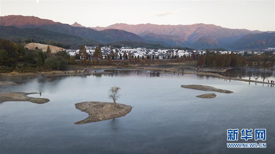 11月14日無(wú)人機(jī)拍攝的安徽黟縣奇墅湖晨景。新華社記者張端攝