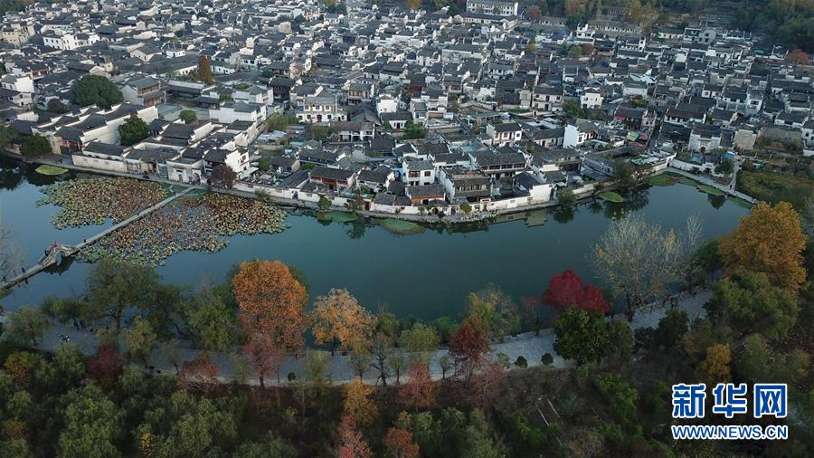 這是11月15日無(wú)人機(jī)拍攝的宏村風(fēng)景區(qū)晨景。新華社記者韓曉雨攝