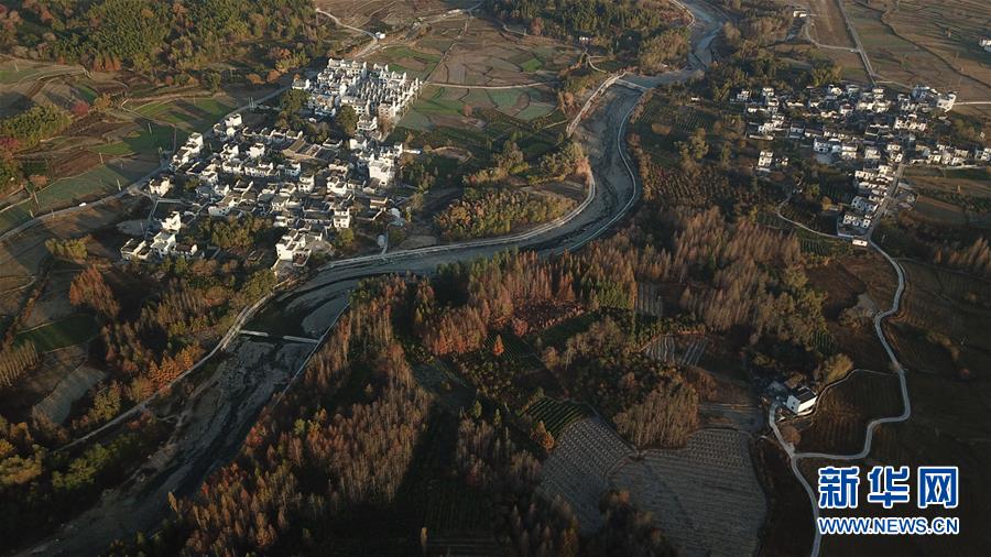 這是11月14日無(wú)人機(jī)拍攝的安徽黟縣塔川風(fēng)景區(qū)。新華社記者張端攝