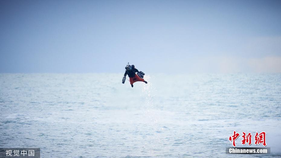 11月18日訊,英國布萊頓,英國發(fā)明家理查德·布朗寧穿著一套由身體控制、噴氣發(fā)動機驅(qū)動、風力導向的飛行服,以高達每小時85.06英里(約137公里)的飛行速度,打破了自己創(chuàng)下的噴氣式飛行服速度的吉尼斯世界紀錄。圖片來源:視覺中國