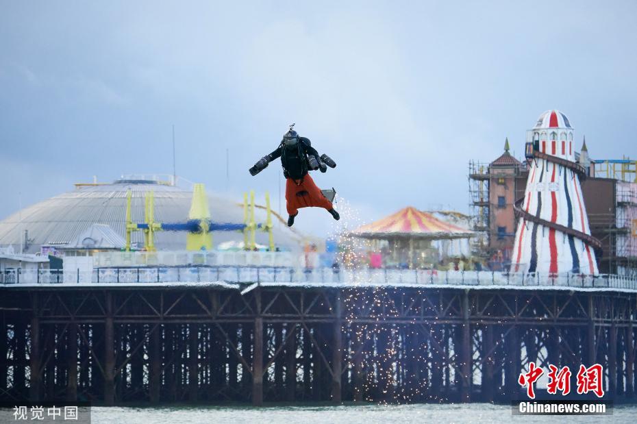 11月18日訊,英國布萊頓,英國發(fā)明家理查德·布朗寧穿著一套由身體控制、噴氣發(fā)動機(jī)驅(qū)動、風(fēng)力導(dǎo)向的飛行服,以高達(dá)每小時85.06英里(約137公里)的飛行速度,打破了自己創(chuàng)下的噴氣式飛行服速度的吉尼斯世界紀(jì)錄。圖片來源:視覺中國
