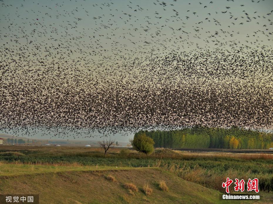 近日,土耳其穆什,椋鳥群遷徙途中,黑壓壓一片遮擋天空。圖片來源:視覺中國(guó)