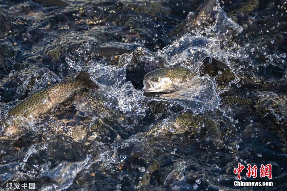 當(dāng)?shù)貢r間2019年11月17日,美國加州薩克拉門托,實拍洄游產(chǎn)卵的鮭魚。