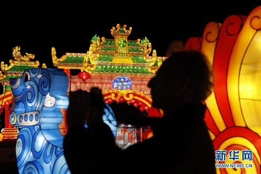 11月20日,在美國(guó)紐約斯塔滕島,游客在第二屆紐約花燈游園會(huì)上賞燈。當(dāng)日,第二屆紐約花燈游園會(huì)在美國(guó)紐約斯塔滕島開幕,50余組各類花燈照亮夜空,吸引觀眾前來賞燈游玩。新華社記者李木子攝