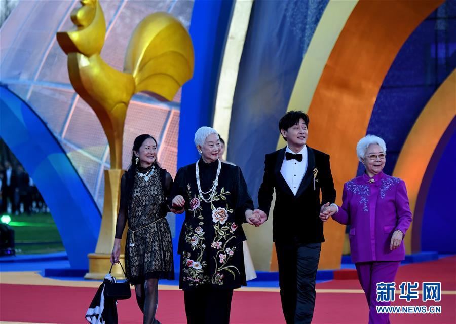11月23日,田華(右一)、盧燕(左二)等在紅毯儀式上。當(dāng)日,第28屆中國(guó)金雞百花電影節(jié)紅毯儀式在福建廈門舉行。新華社記者張國(guó)俊攝