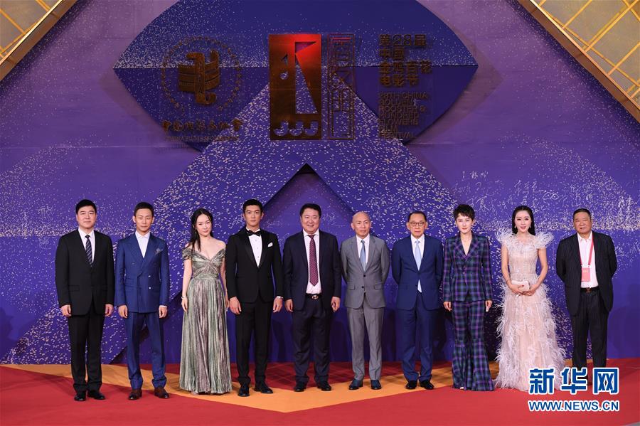 11月23日,黃渤、成龍、陳道明、吳京(左二起)在紅毯儀式上。當(dāng)日,第28屆中國(guó)金雞百花電影節(jié)紅毯儀式在福建廈門舉行。新華社記者張國(guó)俊攝
