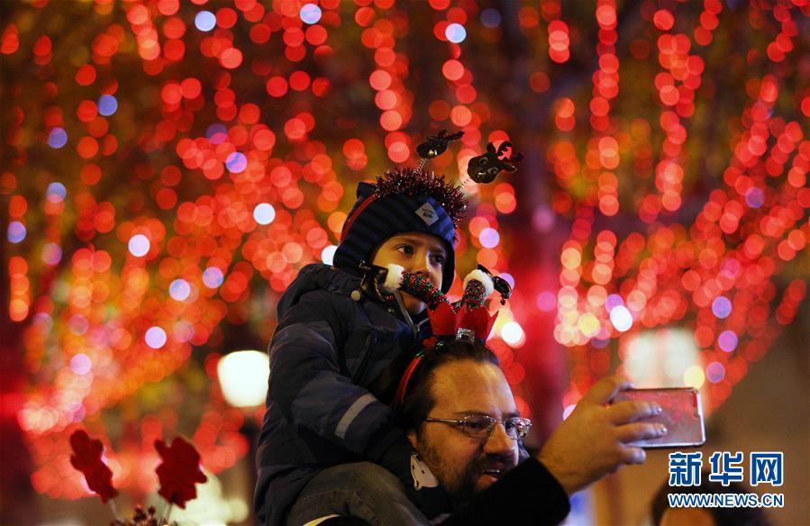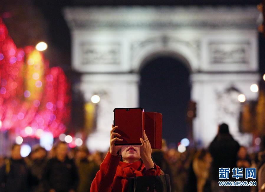 11月24日,在法國巴黎,一名女子在香榭麗舍大街點(diǎn)燈儀式上拍照。當(dāng)日,法國巴黎香榭麗舍大街點(diǎn)亮彩燈迎圣誕。從即日起至1月8日,整條香榭麗舍大街都將被喜慶的節(jié)日燈飾點(diǎn)亮。新華社記者高靜攝