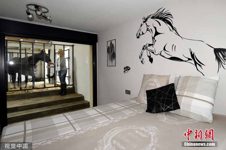 當?shù)貢r間2019年11月25日,法國桑圖瓦地區(qū)弗賴斯內(nèi),一家特別的“酒店”開張,入住者可以透過玻璃清楚的看到馬廄里的馬,還可以跟馬親密接觸。圖片來源:視覺中國