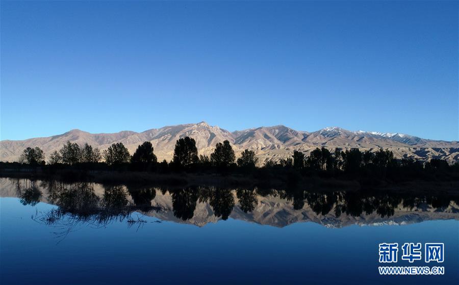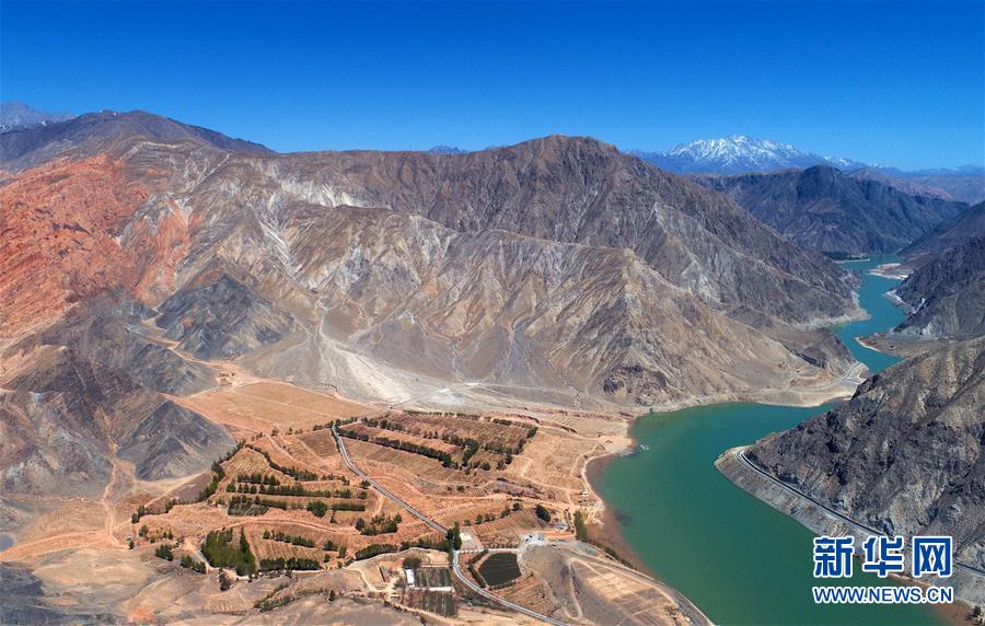 在青海貴德,千姿湖景區(qū)內(nèi)群山與湖水相映成畫(4月16日無人機拍攝)。新華社記者張宏祥攝