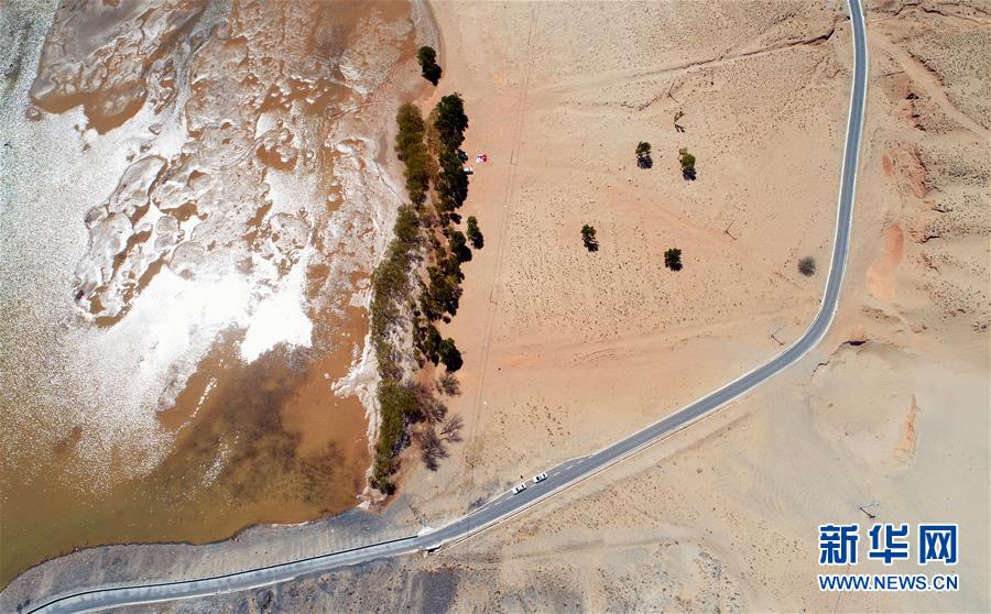 翡翠湖西距花土溝鎮(zhèn)28公里,就在315國道旁邊,它鉀肥鹵水的顏色純美剔透,如鑲嵌在戈壁的璞玉,形成了“水映丹霞、花土朝陽、昆侖橙霞”等魔幻奇觀。李仁奇攝