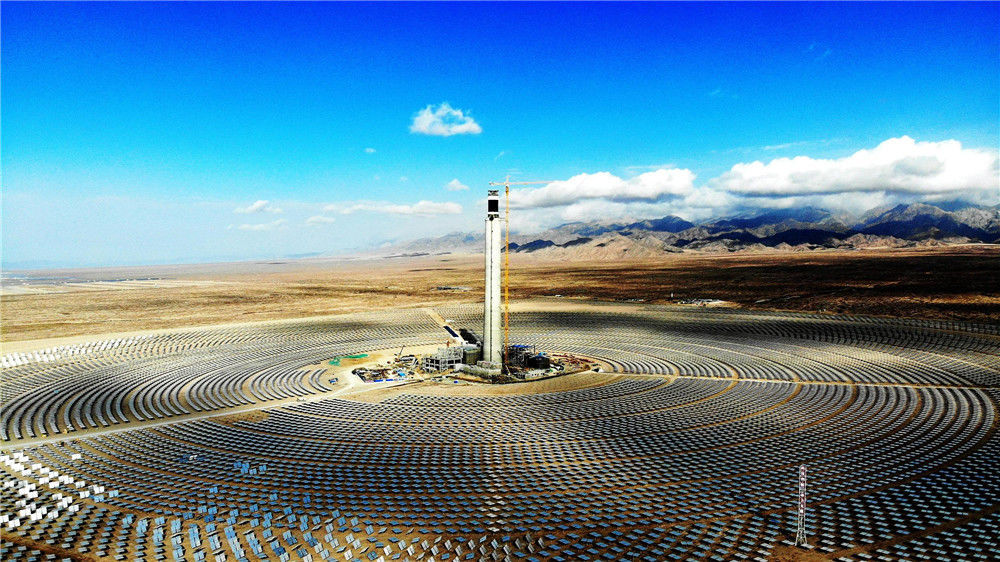 2018年10月13日,地處青海省海西州德令哈市的中控太陽能發(fā)電有限公司10兆瓦塔式熔鹽光熱電站。位于中國西部的青海省,有“三江源”“中華水塔”之稱。如今,青海清潔能源正在從“風生水起”走向“風光無限”。青海太陽能資源約占中國的11%,光熱資源平均年輻射總量可達每平方米5860—7400兆焦耳,僅次于西藏;同時,該省可用于新能源開發(fā)的荒漠土地面積約10萬平方公里,裝機規(guī)模可達35億千瓦,折合年發(fā)電量約5.6萬億千瓦時,是三峽電站年發(fā)電量的56倍。