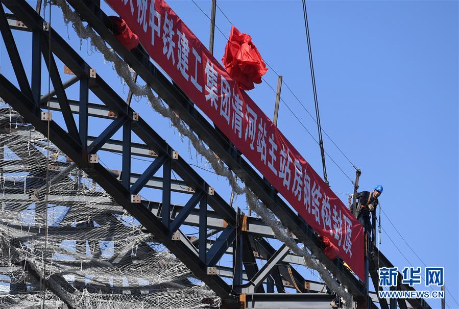 最后一組鋼梁吊裝到位(10月17日攝)。新華社記者張晨霖攝