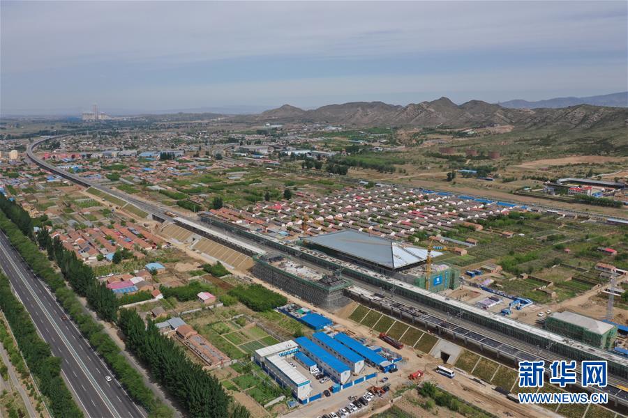 建設中的宣化北站(5月30日無人機拍攝)。京張高鐵宣化北站位于河北省張家口市宣化區(qū)北盆兒窯村附近,京張高鐵線路北側,目前該站已完成站房主體結構、鋼結構、金屬屋面、清水混凝土雨棚結構等施工內(nèi)容,全面進入裝飾裝修施工階段。新華社記者邢廣利攝