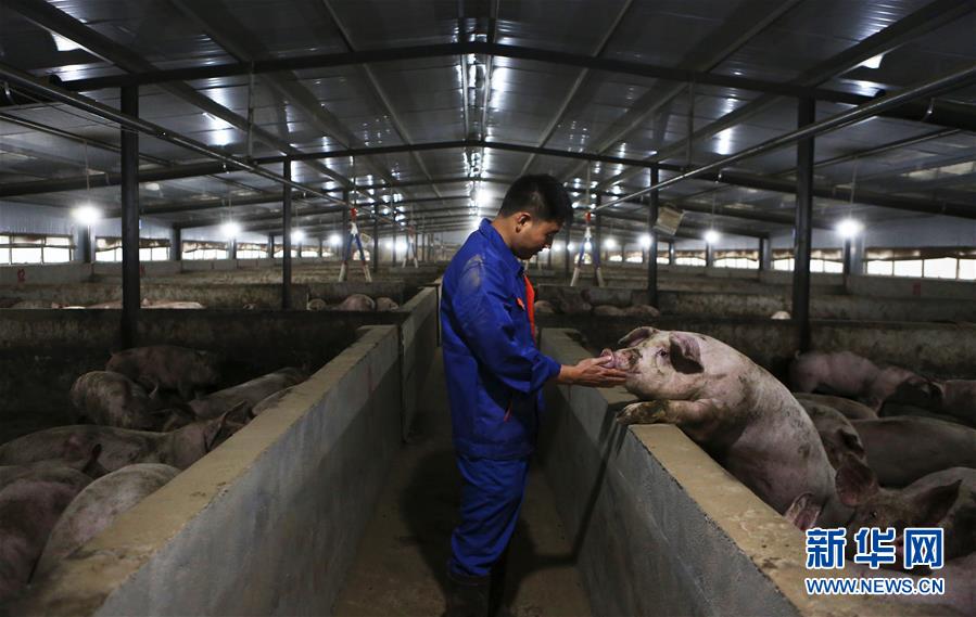 11月28日,在四川省德陽市中江縣一生豬養(yǎng)殖場(chǎng),工作人員檢查豬的生長情況。