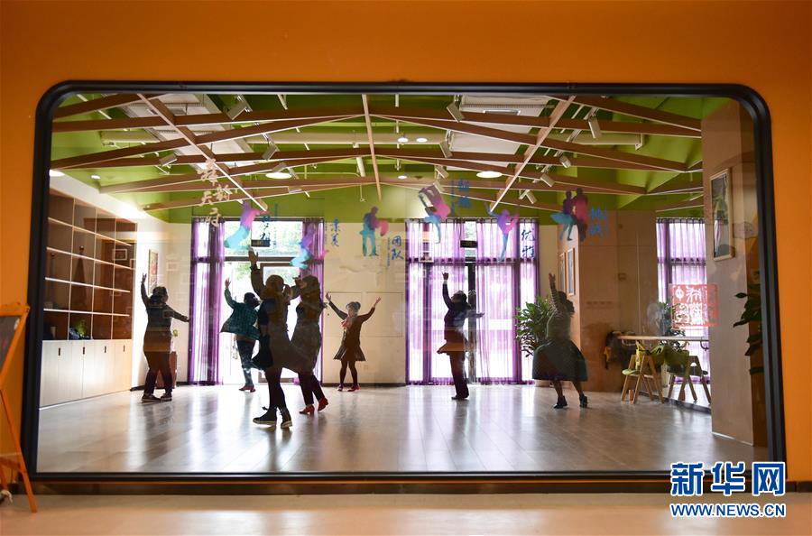 11月13日,市民在成都金牛區(qū)新橋社區(qū)黨群服務(wù)中心內(nèi)跳舞。