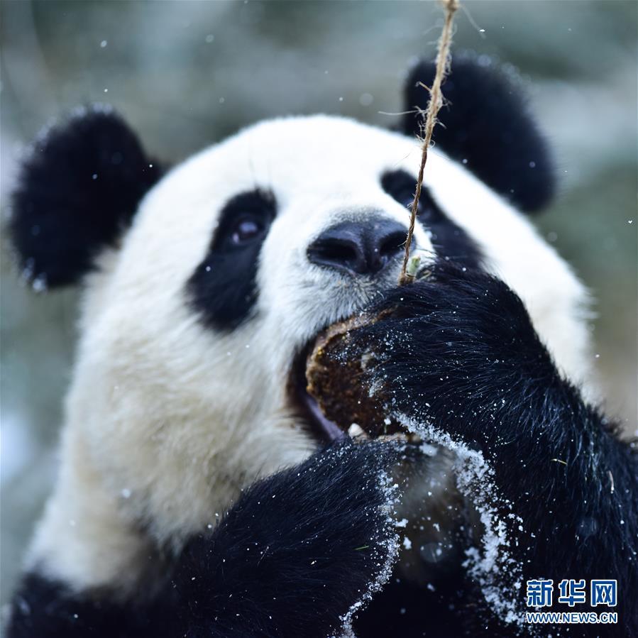 11月29日,在西寧熊貓館內(nèi),兩只大熊貓?jiān)诔灾褡印?當(dāng)日,青海省西寧市迎來降雪,西寧熊貓館四只“萌寵”大熊貓?jiān)谘┨炖锵硎苤灾褡拥臉啡?。?jù)了解,大熊貓生活的適宜溫度在26攝氏度至零下5攝氏度之間,冬季氣溫低于零下5攝氏度時(shí),場館會(huì)啟用保暖設(shè)施。 新華社記者 吳剛 攝