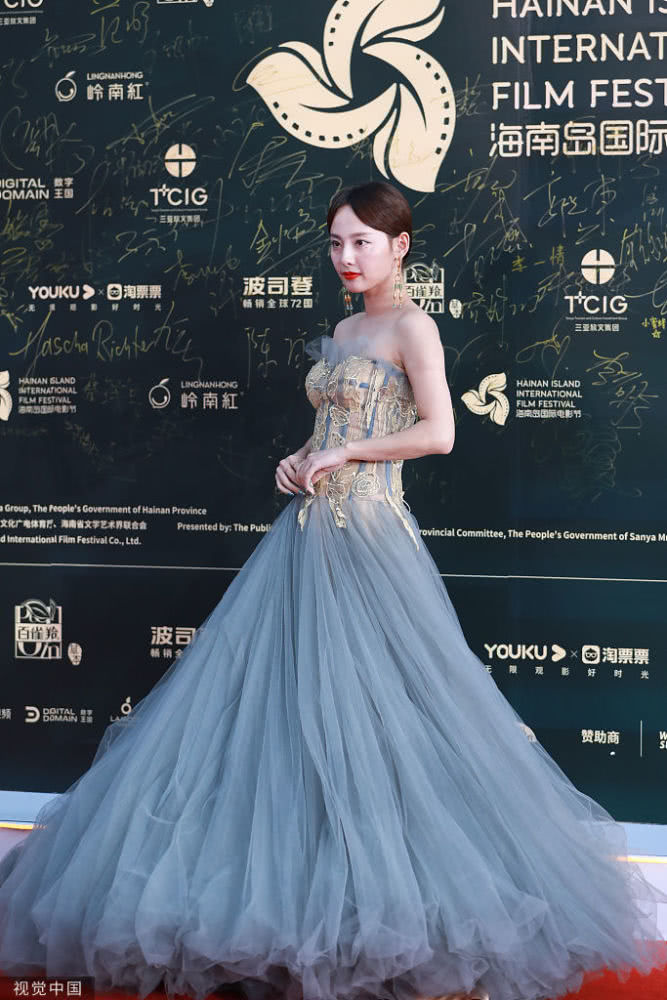 2019年12月1日,三亞,第二屆海南島國際電影節(jié)。何泓姍彎腰為張嘉倪整理裙擺,跟此前劇中傲嬌跋扈的“玫嬪”人設(shè)大不相同。